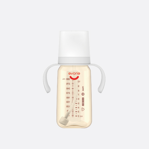 PPSU寬口徑帶柄自動奶瓶300mL