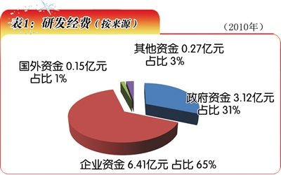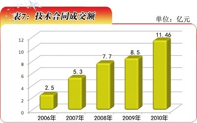“十一五”時期,青海省全社會研發(fā)經(jīng)費逐年增長。2006年該項支出為3.34億元,2010年增至9.94億元,占地區(qū)生產(chǎn)總值的比重為0.74%(表1)。