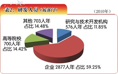 青海省全社會研發(fā)全時人員總數(shù)從2006年的2592人年增長到2010年的4856人年(表2)。