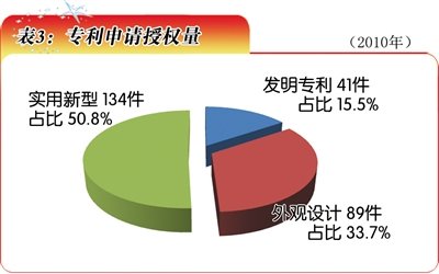 “十一五”時期,青海省專利授權(quán)量達1179件,是“十五”時期的2.77倍。2010年專利授權(quán)量達264件(表3),并獲得國家科技獎勵3項。